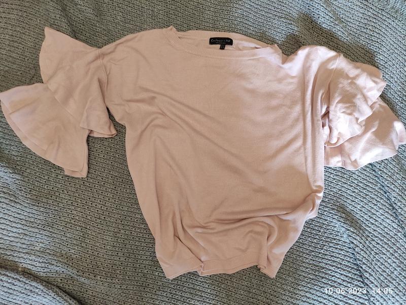 Чудова кофтинка, ніжного рожевого кольору. Шикарний рукав 3/4 виглядає дуже ніжно розмір 12 / 40 Заміри довжина: 56 ширина: 52 додаткові заміри надам