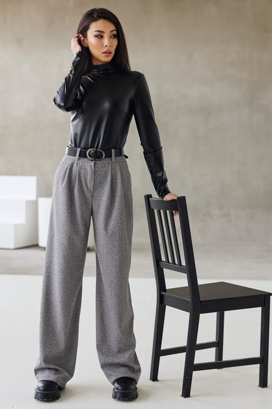 Стильний гольф виготовлений з екошкіри на флісі. Фасон приталений, обтислий. Комір-стійка. Рукав довгий, ушивний. Є нагрудні виточки.