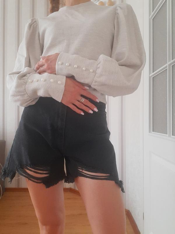 Кофтина у хорошому стані. На плечах є збірки, на манжетах перлинки. Дуже ніжна та елегантна. Заміри: Довжина рукава - 71 см. Плечі - 41 см. Дожина кофтини - 52 см.