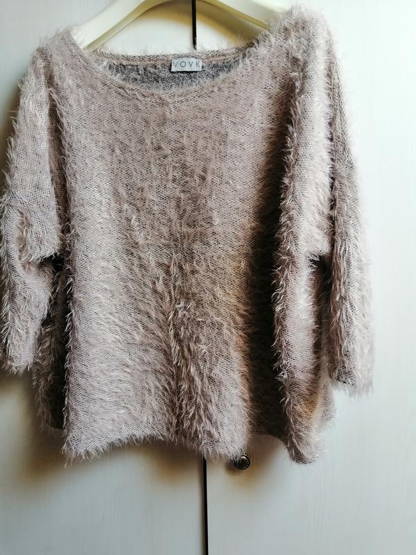 Мохнатый свитерик от украинского бренда Vovk, очень нежный и приятный к телу, легкий в уходе, имеет хороший состав, отлично подойдет ко всем аутфитов, его можно легко заправить в штанке или юбочке, а также носить на выпуск. Размер Л-ХЛ
