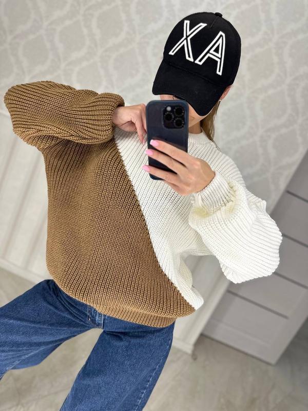 Светр вʼязаний Розмір: універсальний (44-50). Вимірювання виробу: - Довжина виробу 62-64см; - Довжина рукава від горловини 70-72 см; - Ширина 53-65. Склад: 30% акрил; 70% шерсть. Кольори: - Бузок, чорний; - небесний, синій; - молоко, шоколад; - Пудра, чорний; - Пудра, білий; - М'ята, смарагд