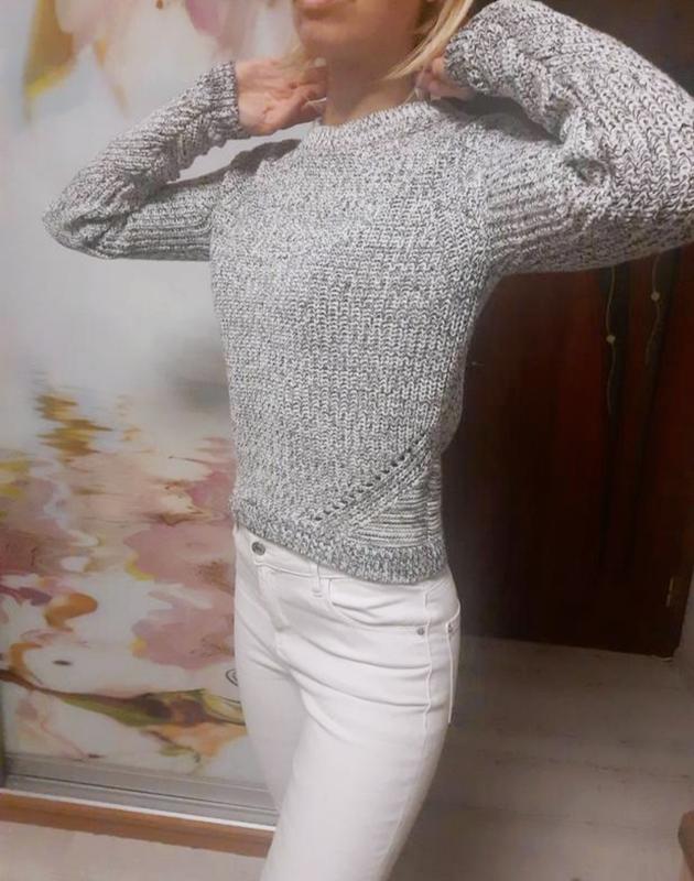 М'ягенька в'язана кофта,приємна до тіла по бірці xs,підійде й на s.Заміри:довжина рукава від горловини 78см,від плеча 68см,ширина плечей 36см,ПОГ 42см,ширина низу 36см,довжина 52см.Оскільки кофта йде в'язкою,тому тягнеться