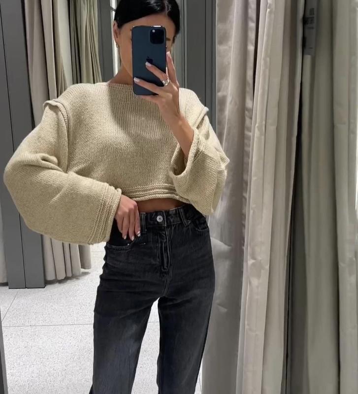Стильний вкорочений светр Zara, матеріал вʼязка Розмір S, повномірний