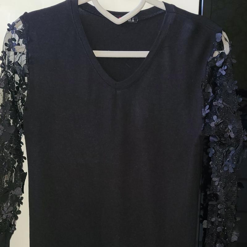 Дуже гарна,якісна,та стильна кофтинка,стан нової.Рукавчики м'ягеньки,гарно тягнеться, та приємна до тіла.Розмір xs-s,можливо підійде і на М-ку але не велику.