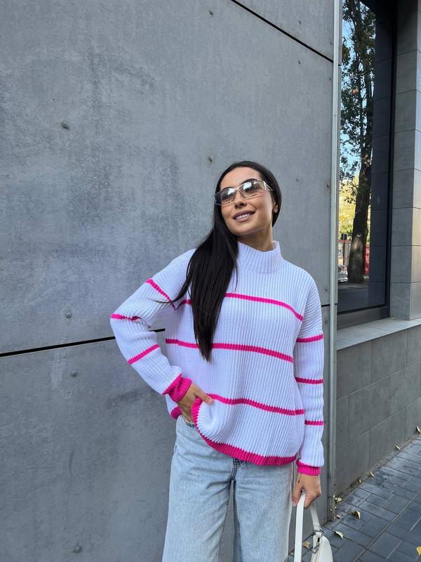 Светр у смужку 😍 Розмір: oversize 42/46 Акрил+вовна Ціна:600 грн 🎀Модний та теплий светр вільного крою.Комфортний для повсякденного носіння на холодну пору року ☺️ Заміри: Н/ог -53 см Довжина по спинці: 58 см Довжина рукава ( від шва): 49 см