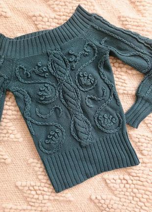 Шикарний светр об'ємної в'язки в фантастичному кольорі. Дуже красивий виріз та манжети .
