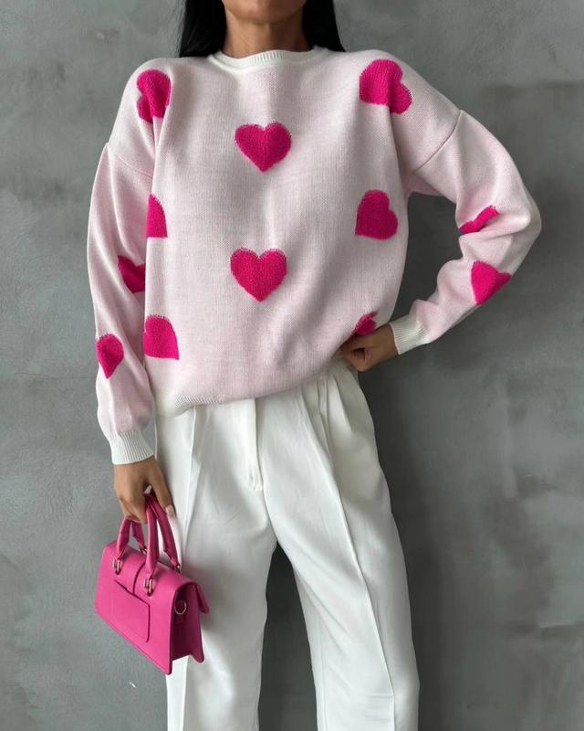 Новинка! Доступна до замовлення!Жіночій светр з сердечками Модель 0293 Матеріал: в'язка Размер: оверсайз Постачальник Туреччина Ціна🏷890 грн wow