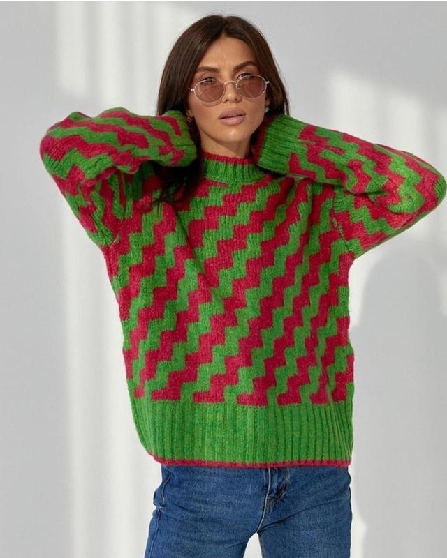 ☆☆☆New autumn collection☆☆☆ 🔝Свитер с зигзагами как у Mango❤️ производство Турция🇹🇷 премиум качество (70% akril/20%polyester/10%еlite) размер oversize 42/48 длина 70 см рукав 54 см груди 106 см цвет: красный,зеленый 870грн