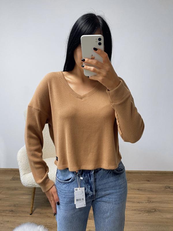 Плюшева кофтинка від 𝐂.𝐊, в рубчик, нереально м’якенька та приємна до тіла, можна спускати плече Бавовна Колір: Коричневий Розмір: S ( але йде як оверсайз)