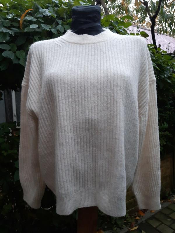 Светр оверсайз від H&M, розмір М. За рахунок вільного крою може бути і на L. Рукав приспущений. Бірка з розміром і складом зрізані. Довжина - 56 ПОГ - 58 Рукав від горловини - 69