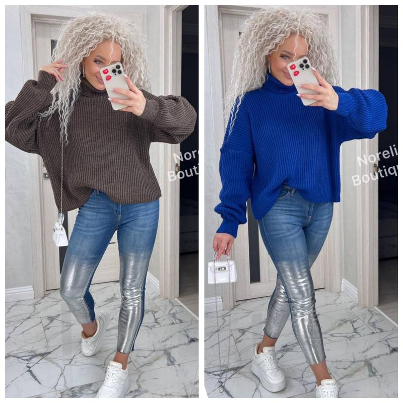 Свитер «Жасмин» Женский вязанный свитер оверсайз.Теплый ,мягкий и приятный на ощупь. В таком свитере вы будете ощущать себя очень комфортно. Свитер свободного прямого пошива.Рукав длинный на резинке. Плечо спущено .Высокий воротник с отворотом. Замеры Св.Жасмин✅ Дл изделия 52/55 Дл плеча 25 Дл рукава 45 Обх груди 110.ск3.Не натискайте на кнопку Купить,технічні проблеми Підписуйтесь..чекаю)Читайте розділ про мене)