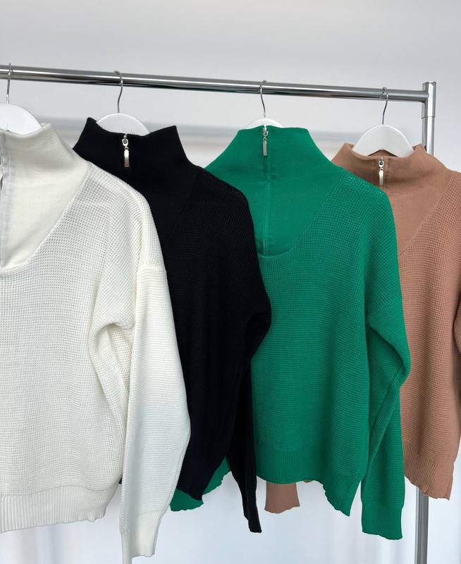 🖤 В НАЯВНОСТІ 🖤 ◽️Светр з блискавкою ◽️Модель 266 ▪️Виробництво - Туреччина ▪️Вʼязка - 50% акрил, 50% коттон ▪️Відмінна якість ▪️Дуже приємний на дотик ▪️Розміри - оne size ▪️Обʼєм грудей - до 116 см ▪️Довжина - 56-58 см ▪️Довжина рукава від горловини - 71-72 см 730 грн