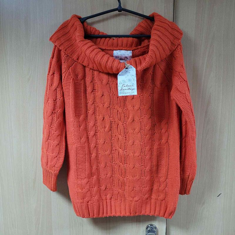 Свитер с отложным воротником,рукав реглан, красный Ог 108+, низ 94+,рукав от ворота 61,длина 66.