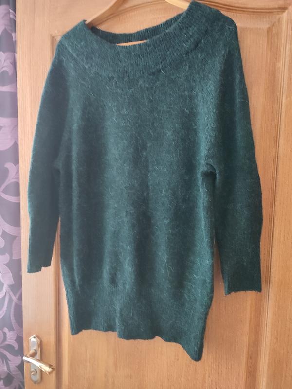 Теплый удлиненный свитер,в составе шерсть альпака, цвет зелено черный,стан идеальный