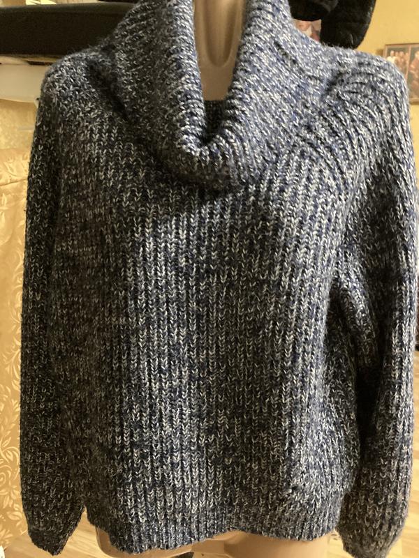 Чудовий світер,воротник типу «водоспад». Колір меланж( синій з сірим) На біржі вказан розмір S, але піде й на 48. Заміри на фото. Можливо відкрите плече