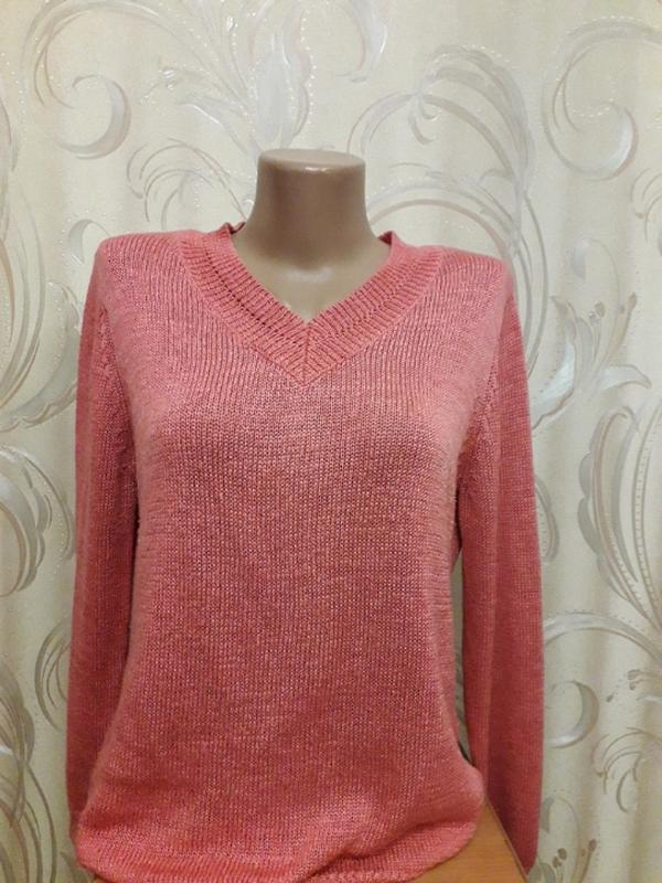 светрок коралового кольору в ідеальному стані, довжина рукава від плеча 57 см, пог 47 см, довжина по спинці 58 см. склад 55 поліакрил, 45 поліамід