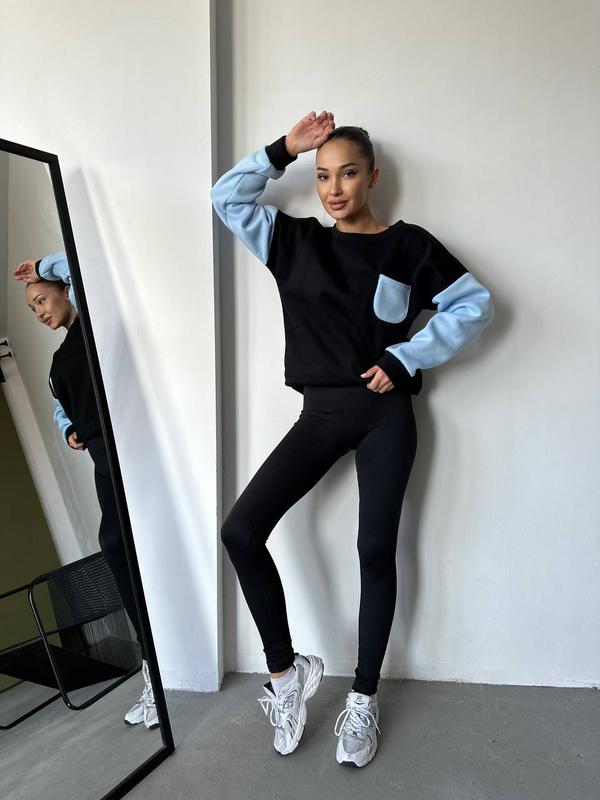 фото в живую Модель 0124 Кофта -батник теплый Ткань : три нить на флисе теплые Цвета:бело -голубой,черно -голубой Размер 42-44,46-48