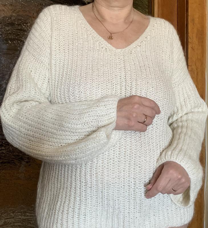 Продам светер ручного виконання ,склад меринос і нитка мохеру, колір молочний