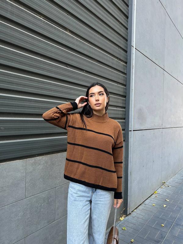 Светр у смужку 😍 Модель: Osip115 Розмір: oversize 42/46 Акрил+вовна Ціна: 649 грн 🎀Модний та теплий светр вільного крою.Комфортний для повсякденного носіння на холодну пору року ☺️ Заміри: Н/ог -53 см Довжина по спинці: 58 см Довжина рукава ( від шва): 49 см