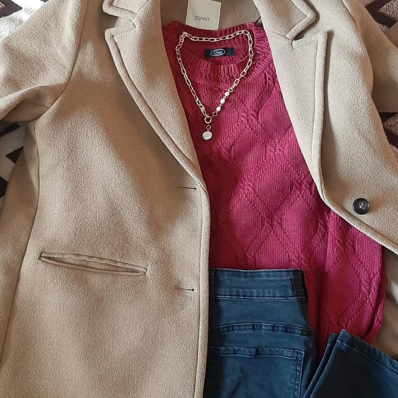Свитер в ретро стиле Хорошая вязка Имеет приятный малиновый цвет Размер С, небольшая М