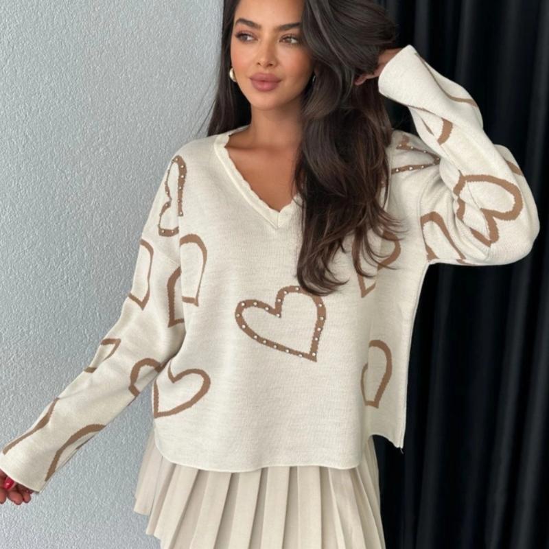 💞💞НОВИНКА💞💞💞 В'язаний светр з серцем нова ціна 695грн модель 2840 Розмір 42-48 (оверсайз) Виробник Туреччина 4% вовна, 65% акрил, 15% нейлон, 13% поліестр код1955(мал)