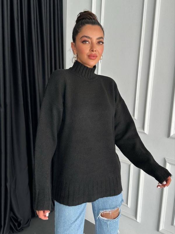 Светр виконаний із приємного щільного трикотажного матеріалу. Тримає форму і не мнеться. Модель базового крою з круглим вирізом та довгими рукавами. • Розмір: універсальний • Склад: 50% wool, 50% акрил • Довжина 65 см • Рукав від горловини 70 см • ПОГ 53 см 2777
