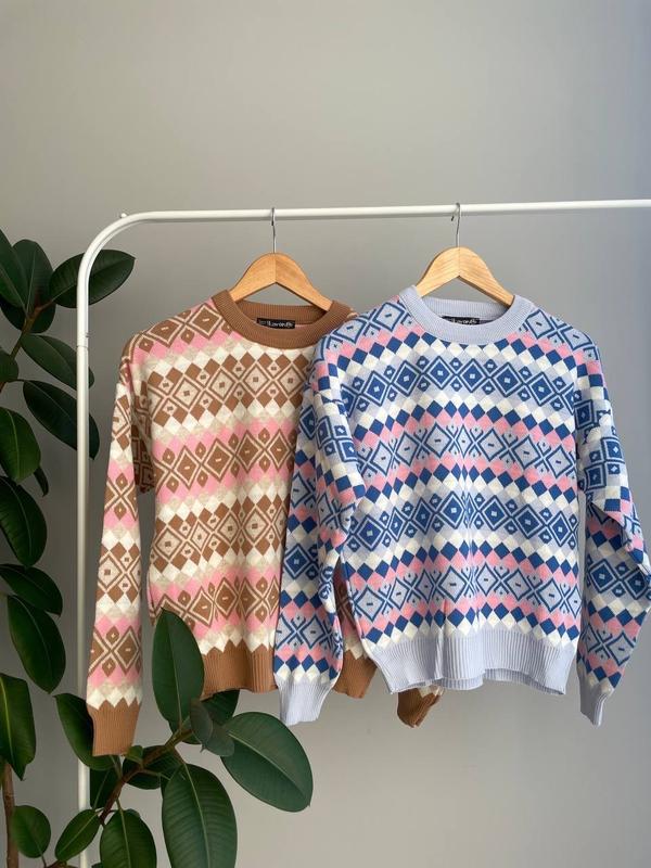 СВЕТР З ГЕОМЕТРИЧНИМ ПРИНТОМ мод 0482 ➖Розміри: one size 42-46, довжина близько 56 см, рукав від шва 50 см, напівобхват грудей 52 см ➖Тканина: машинна в'язка (50% акрил, 50% котон) ➖Колір: бежевий, блакитний ➖Виробник: Туреччина _______________________ ▪️Є накладений платіж з передоплатою 200 грн ✔️Надсилання новою поштою по всій Україні ✔️ 100% передплата на картку приват банку БАГАТО НОВИНОК в моєму інтернет магазині на СТОРІНЦІ ПО ДУЖЕ ДОСТУПНІЙ ЦІНІ