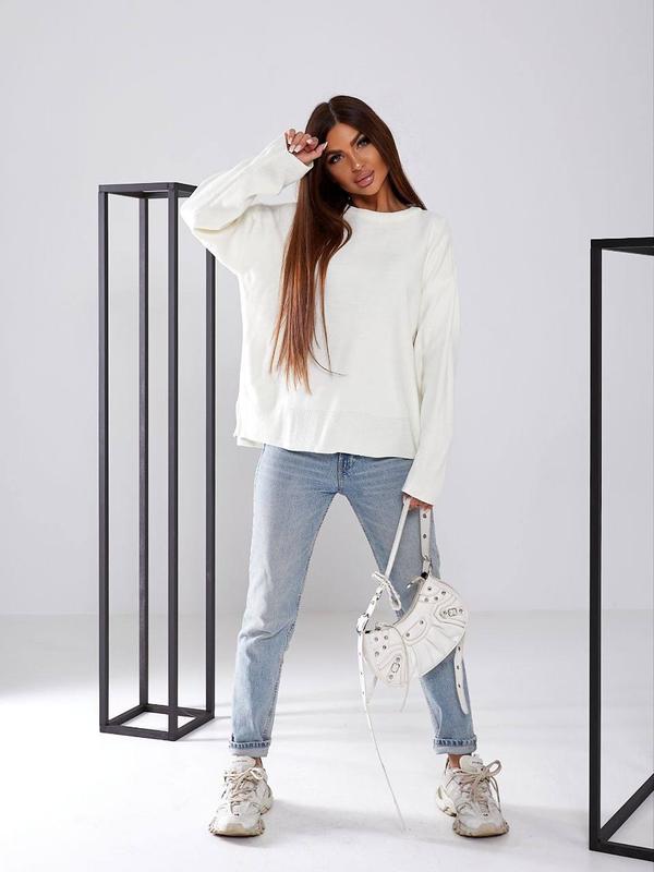 нов.мод.2 Ан 1.11 Новинка‼️ Светр в стилі оверсайз. Виробник Туреччина🇹🇷 Модель - 196/004 Якісна фабрична вʼязка. 70% вовна 30% акрил. ОГ до 118см. Довжина 65см. Довжина рукава від горловини 70см. Дуже приємна до тіла. З боків унизу розрізи Кольори: смарагд, чорний, малина, молоко B2B