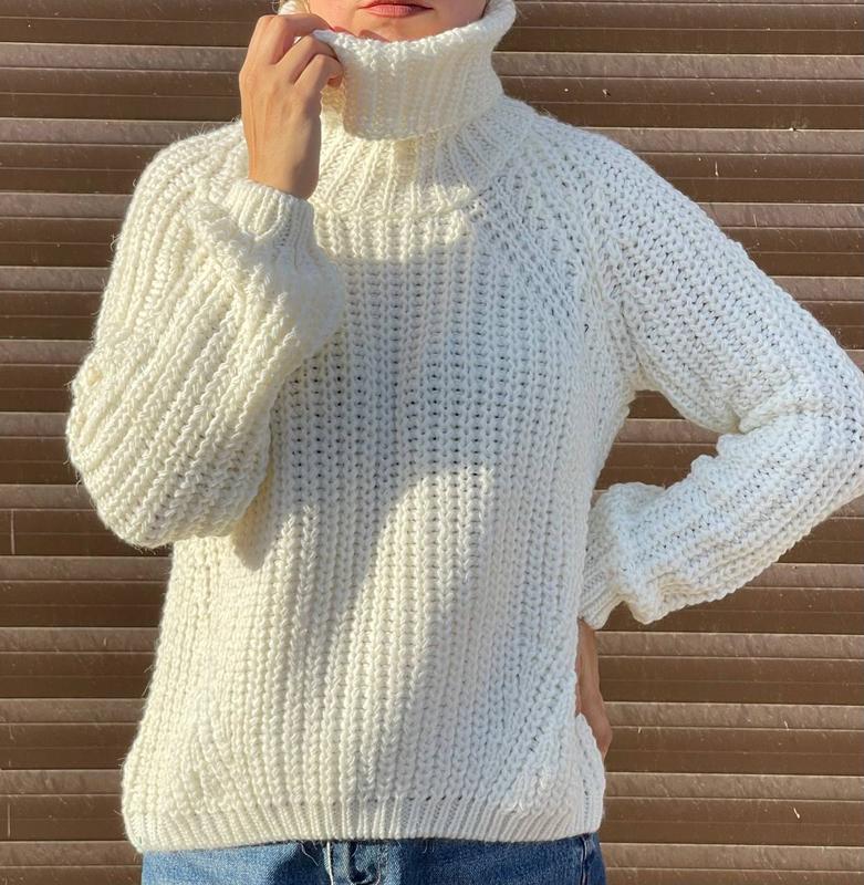 Кей к 30.10 Светр з високою горловиною Виробництво Туреччина Мод. 124 Вишуканий базовий светр з крупною в’язкою Кольори - білий, трава, джинс, малина, олива, чорний, пудра ОГ - 102 см Довжина 60 см Склад 30% вовна, 70% акріл