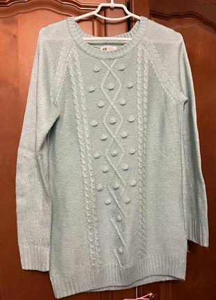 Длинный свитер H&M мятный цвет