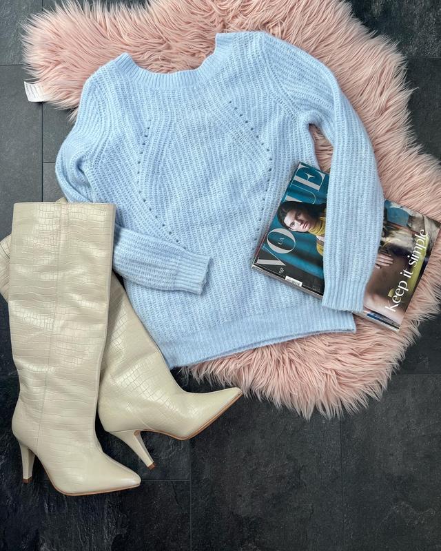 Дуже гарний та приємний до тіла светрик PRIMARK xs/s Зефірно-блакитний колір На спинці цікавий V виріз Стан ідеальний 380