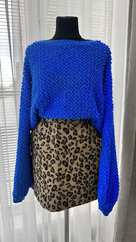 Стильний вкорочений светр насиченого синього кольору «електрик». В ідеальному стані. Рукава до низу розширені та на резинці. Дуже гарно до штанів чи спідниці з високою посадкою. Відправка тільки новою поштою, є безпечна оплата. Спідниця також в продажі, запитуйте