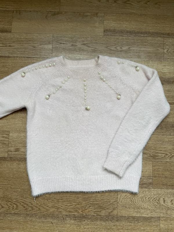 Свитер нежно розового цвета. Телефон, нужду, не передает цвет( размерXS-S Мягкий и приятный к телу. Стан идеален, но есть небольшой нюанс с бусинами, на фото видно. Цена 🔥🔥🔥 Дополнительные фото и замеры отправки🌈