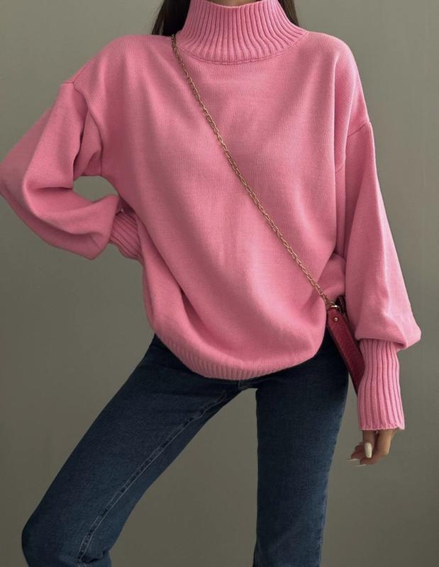 Свитер оверсайз на размер 46-50. Цвет розовый, бежевый