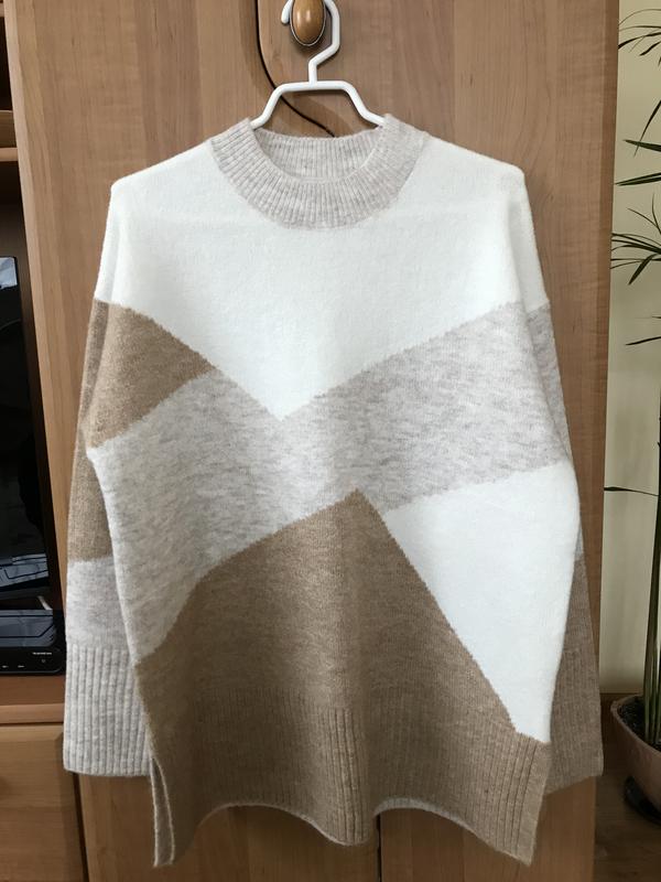 Светр фірми PAPAYA, розмір - L. Заміри: плечі - 54см, підмишками - 55см, низ - 55см, довжина - 71см, рукав від плеча - 51см, рукав від підмишки - 45см, ширина манжета - 10,5см.