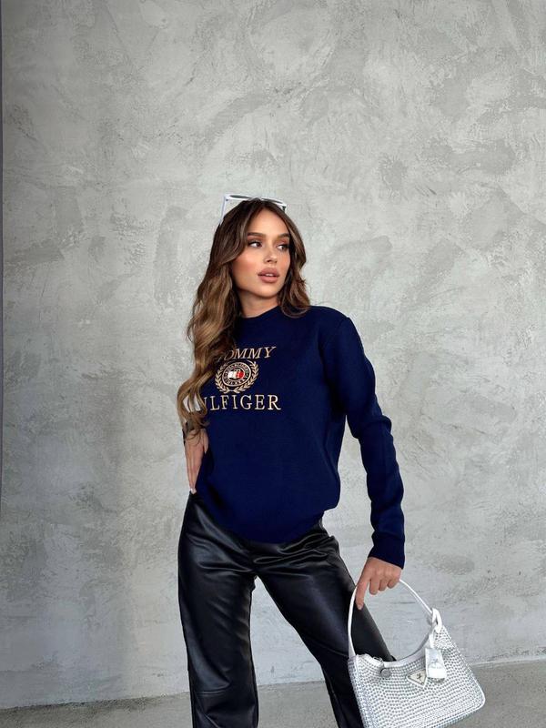 🔝🔝Новинки 🔝🔝 Трендові светри Томмі✔️ ▫️Темно-сині та білі ▫️Розмір єдиний ▫️Висока фабрична якість Туреччина 🇹🇷 Ширина 50 см Довжина 58 см Рукав від плеча 61 см ✨1390грн
