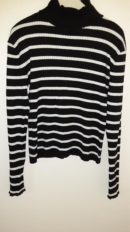 стильний светрик в полоску фірми ZARA. з природними рукавами горловиною. Розмір L. Довжина виробу 47. Довжина рукава від плеча 57. півобхват грудей 40. добре тягнеться)