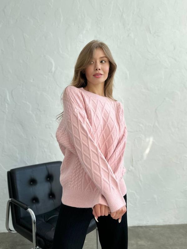В'язаний светрик у кольорах, з гарним візерунком❤️ Дуже затишний 🙌 Ан2274 Колір: блакитний, пудра, білий, м'ята, жовтий Розмір: універсал 42-46 Тканина: акрил, вовна + віскоза Довжина 65см
