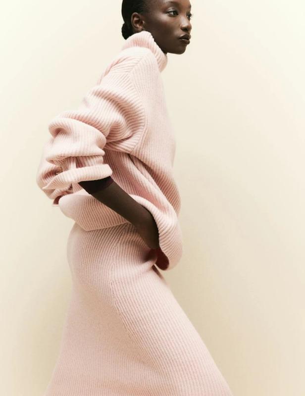 Светр з мʼякої рубчастої вʼязки. Вільний крій. Має водолазку та занижену лінію плечей. Розмір: зростання моделі 178 см/5 футів 10 дюймів, на ній розмір М. Довжина: Нормальна довжина Довжина рукава: Довгий рукав Посадка: вільна посадка Виріз: Приталений комір-стійка. Опис: Світло-рожевий, монохромний. Концепція: Повсякденна мода складові Поліестер 54%, Шерсть 5%, Акрил 41% Більш екологічні матеріали Перероблений поліестер 54%