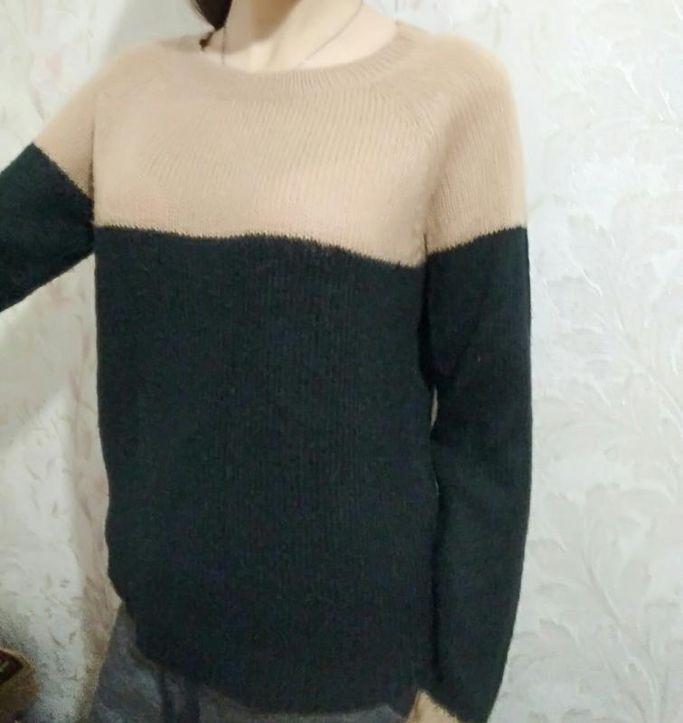 Тонкий двухцветный свитер Замеры: ПОГ - 48 см Рукав от горловины - 72 см Длина - 62 см Хорошо тянется. Есть немного катышек.