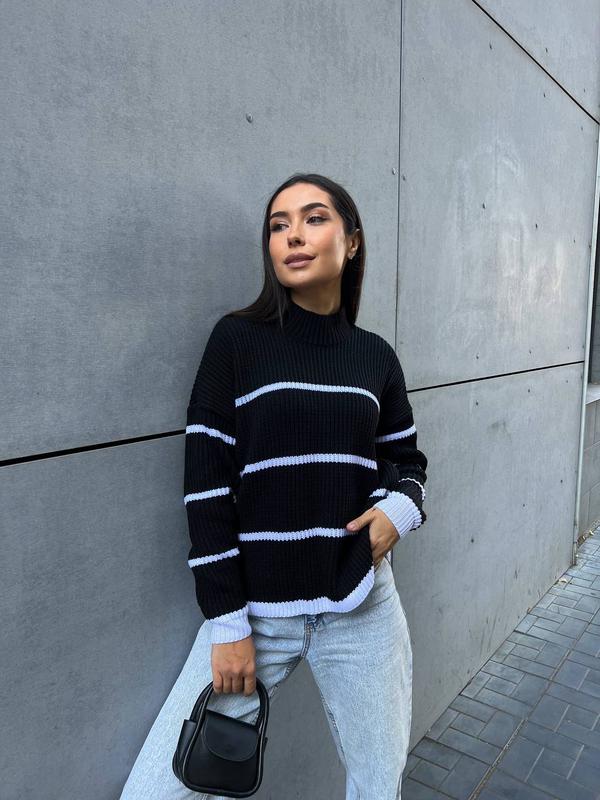 Светр у смужку 😍 Модель: 115 Розмір: oversize 42/46 Акрил+вовна 🎀Модний та теплий светр вільного крою.Комфортний для повсякденного носіння на холодну пору року ☺️ Заміри: Н/ог -53 см Довжина по спинці: 58 см Довжина рукава ( від шва): 49 см