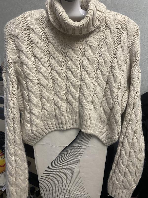Теплый модный свитер укороченный, плечи спущенные, длина 47, ПОГ 70