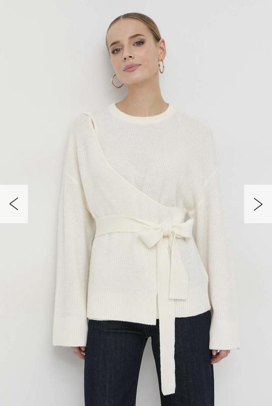 Размер С, новый с биркой. Цвет молочный. Ззади на шее пришит значок guess. Точно как на фото. Брала на свой низ С, верх М. Трикотаж, поэтому будет на М отлично или же затянуть пояском. Блана на скидке 2. Себе и сестре(ей добавить нет возможности)
