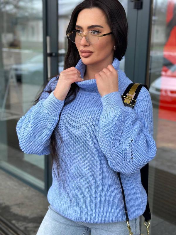 Светрик з горлом Мод 5022 пм📍 ▫️Розмір універсал 42-48 ▫️Склад 30% акрил, 70% вовна ▫️Кольори: джинс, пляшка, лаванда, молоко, пудра, гірчиця, блакитний, шоколад, м’ята Заміри виробу в лежачому стані: - довжина 60 см; - ширина 48-56 см; - довжина рукава від горловини 67 см