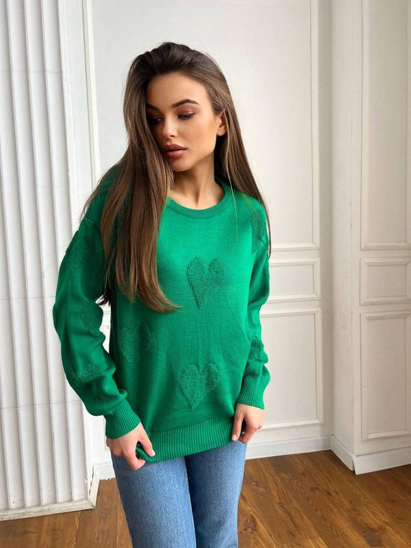 🖤 НОВИНКА 🖤 ▫️Светрик ▫️Модель 4286 ▪️Виробництво - Туреччина ▪️Вʼязка - 50 % вовна , 50% акрил ▪️М’який , не колеться ▪️Декорований вʼязкою у вигляді сердечок ▪️Розміри - універсал ( 42-46) ▪️ОГ - до 102 см ▪️Довжина - 58-60 см ▪️Довжина рукава від горловини - 69-70 см ✅ 655 грн