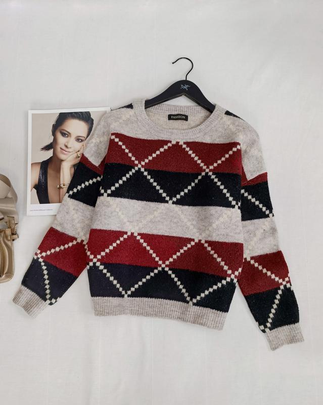 🌿светр в принт вільного крою, тканина легка, містить шерсть 10% Розмір:М Заміри:ПО грудей 56 см , довжина 57 см, рукав від горловини 68 см