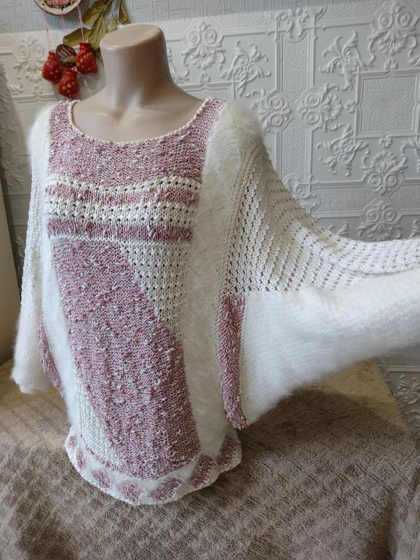 Вінтаж, в'язаний светр, кофта, ручна робота. У складі є ангора. Розмір оверсайз, підійде від 46 до 50. Рукав кажан.