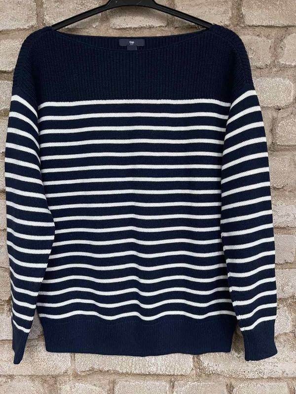 Хлопковый свитер в синюю полоску GAP . Очень мягкий и приятный к телу материал. Отлично дополнит Ваш гардероб. После стирки сохраняет первоначальную форму и яркость цвета, не скатываются. Состав 55% хлопок, 40% нейлон, 5% акрил На бирке указан размер М . Обязательно ориентируйтесь только на замеры! длина 66 см длина рукава 54 см плечо 13 см ширина 56 см плечи 33 см