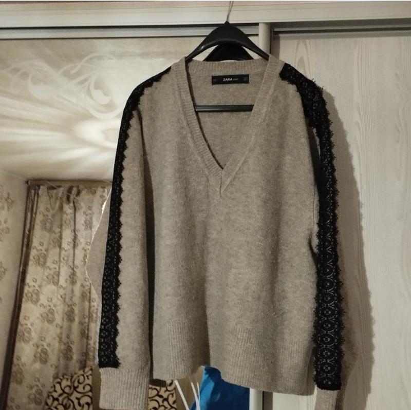 продам светр у новому стані підійде на 50-52 розмір,фірми Zara, теплий приємний до тіла, заміри пог-59 довж-61 глубина виріза горловини 22 см.