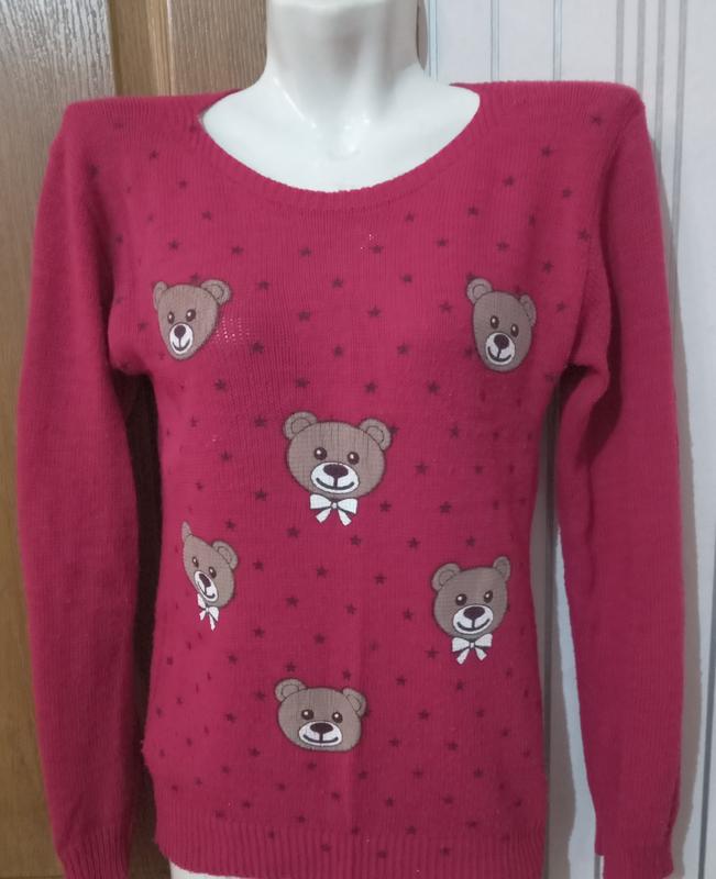 Милый свитер с мишками. Ткань фабричная машинная вязка. плечи - 40 ПОГ. - 40 ПОБ. - 42 Рукав. - 54 Длина - 56